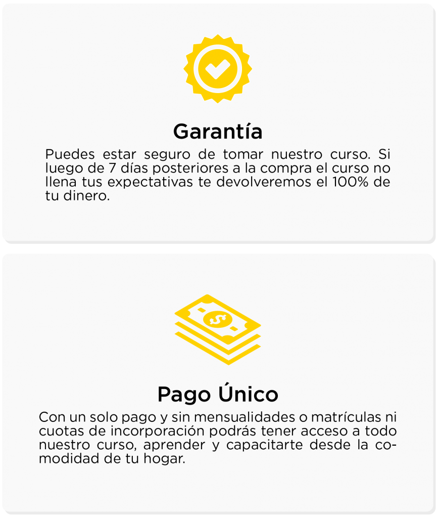 Inmediatamente luego del pago recibirás tu acceso para comenzar este curso. Podrás crear tu propia contraseña y enviaremos este respaldo a tu correo. Es un curso online que se adapta a tu ritmo, tú decide cuándo comenzar y cuándo terminar. No tiene un horarios definidos ya que todo el contenido ya está cargado para ti.